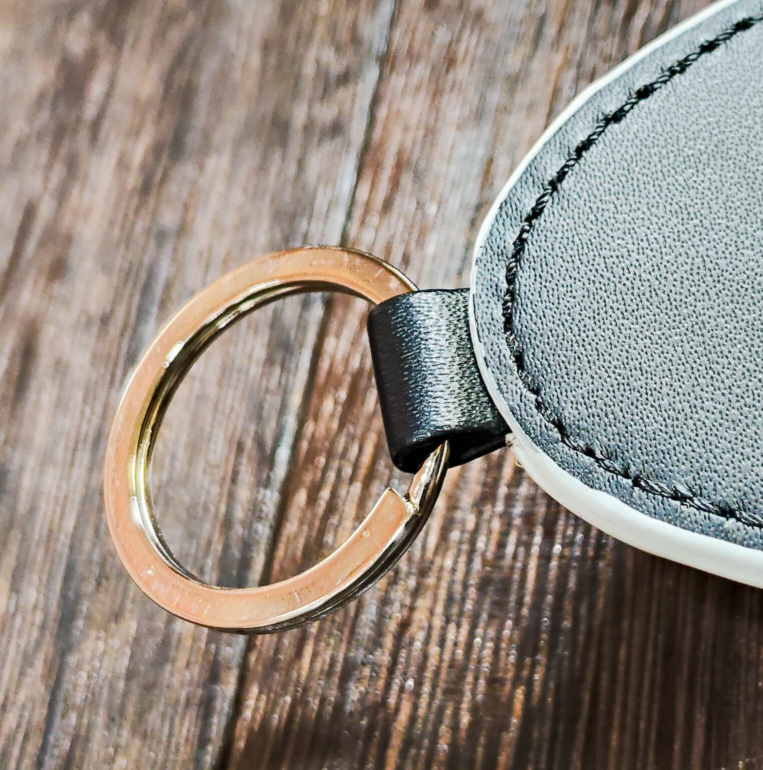 しっかりとした強さがあり、柔らかい触り心地が特徴の楕円型キーホルダー。