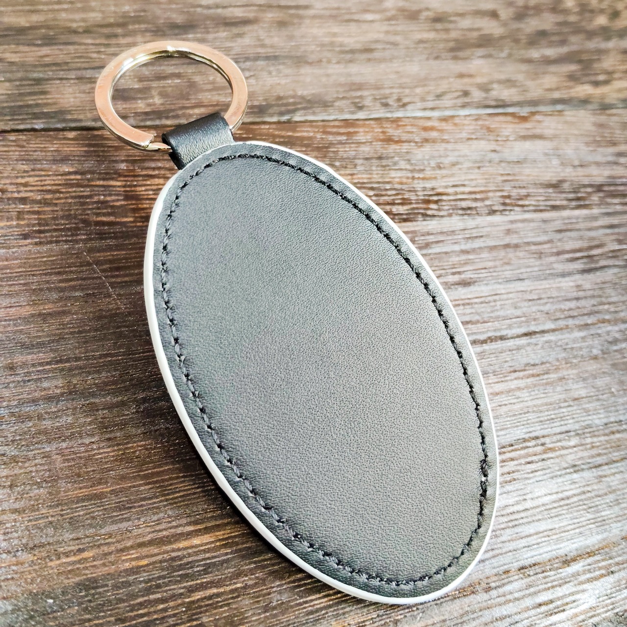 柔らかい触り心地が特徴の楕円型キーホルダー。