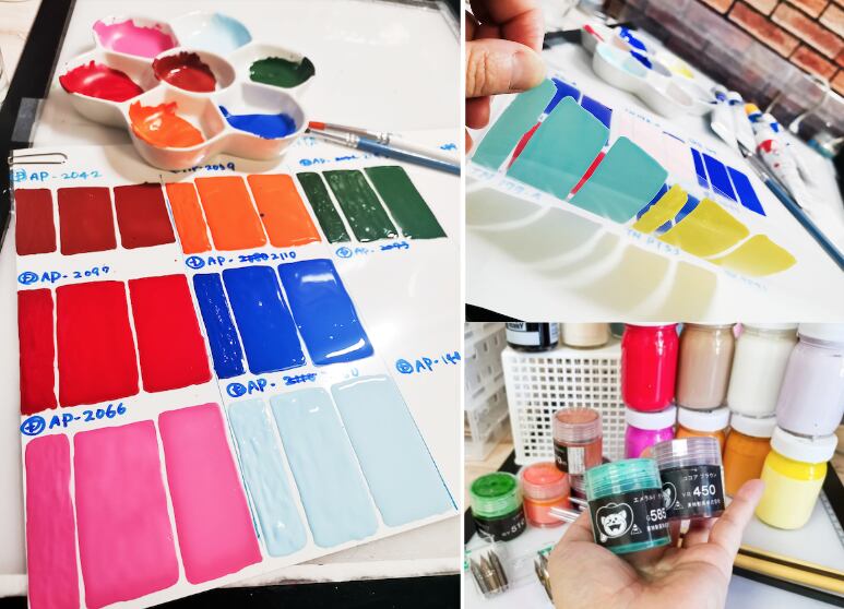 過去の経験と感覚だけを頼りに、全く情報が無い状況から市販絵具をセル絵具として活用する方法を模索。